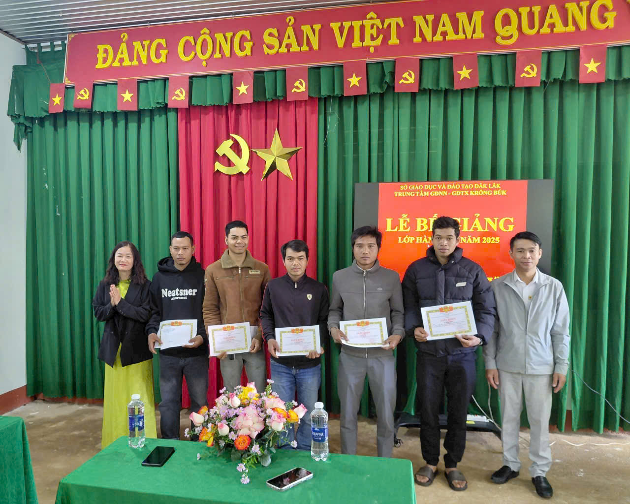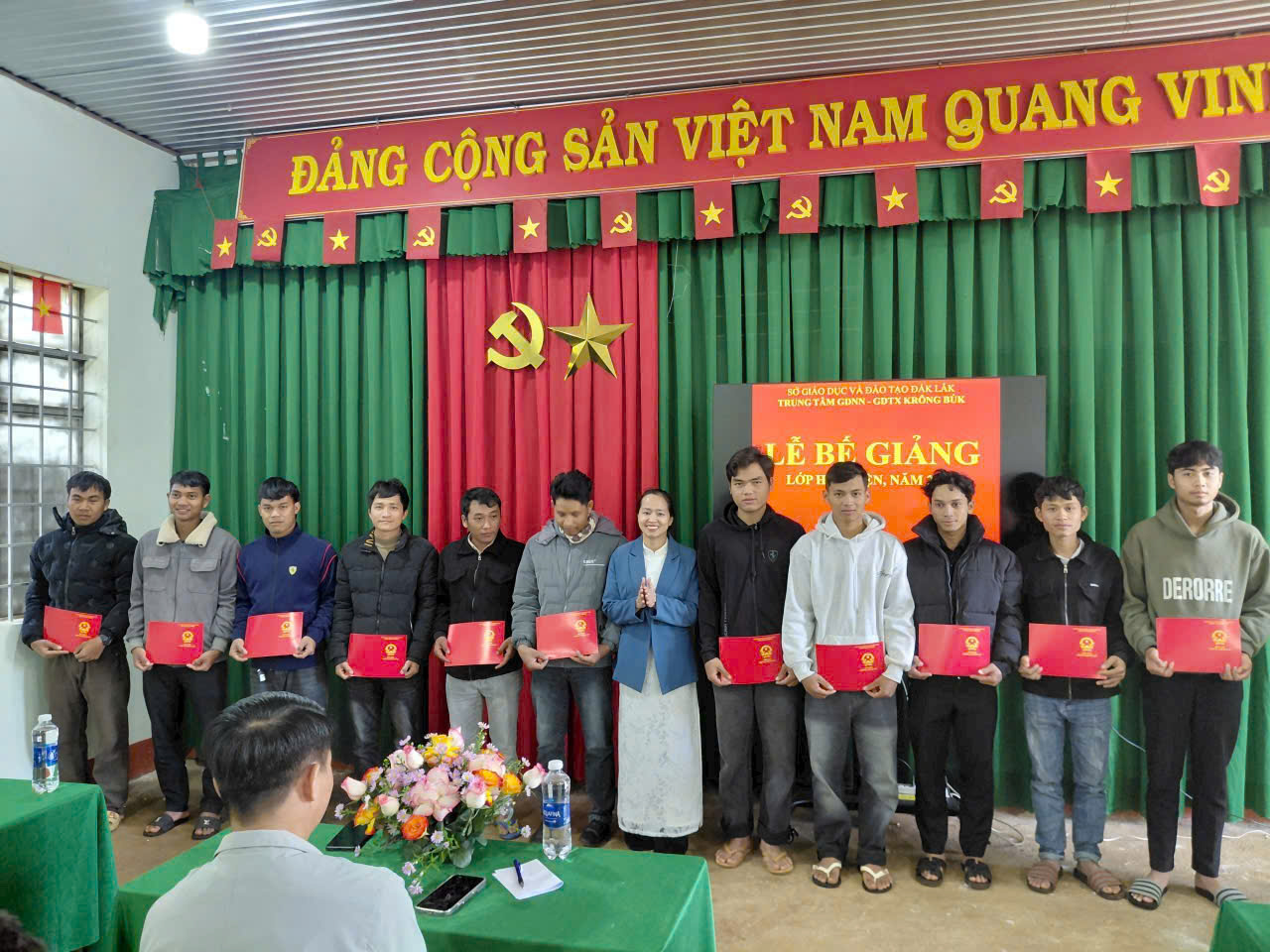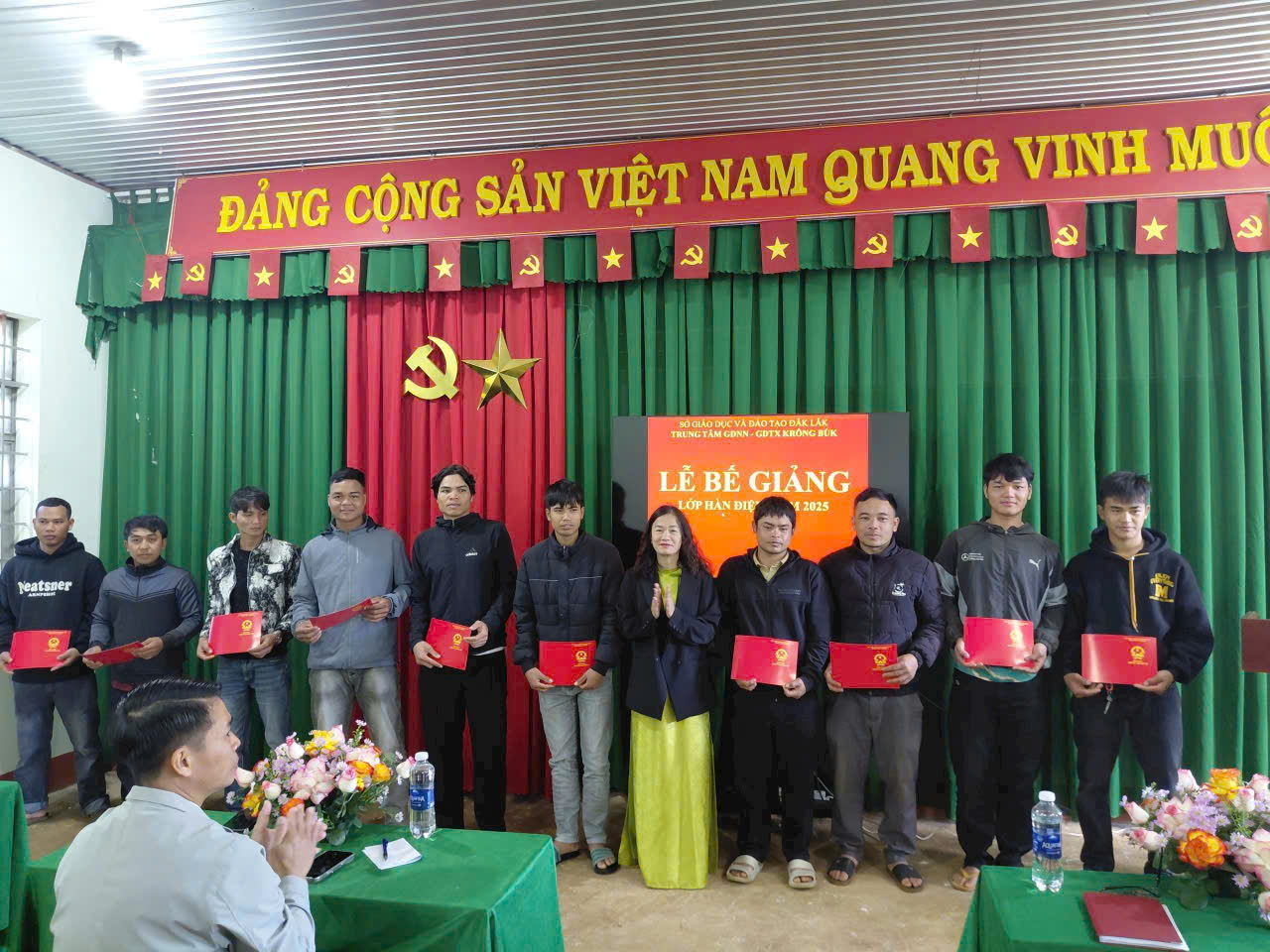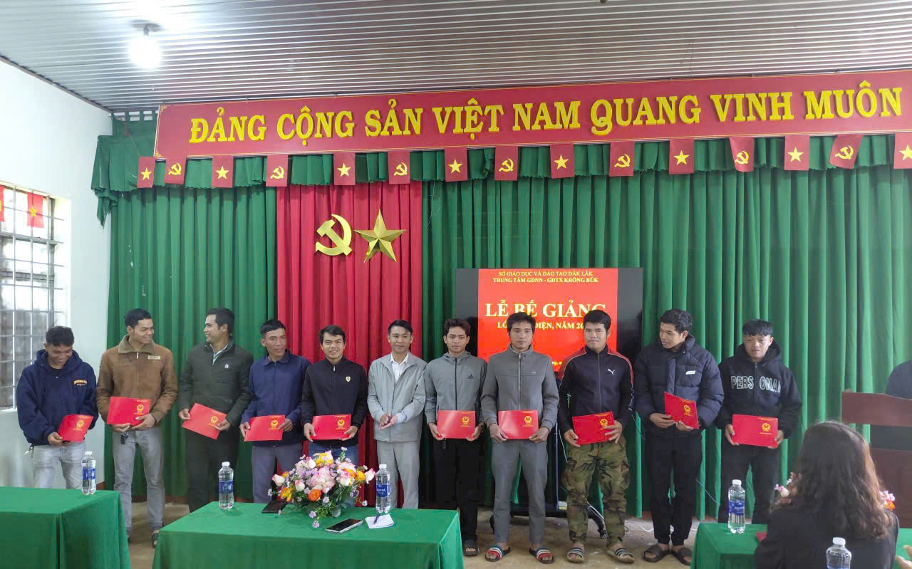 Sáng ngày 22/12, Trung tâm Giáo dục nghề nghiệp – Giáo dục thường xuyên Krông Búk đã tổ chức lễ bế giảng lớp Sơ cấp nghề Hàn điện, cấp chứng chỉ sơ cấp cho 31 học viên trên địa bàn xã Krông Búk. Đến dự có đồng chí Bùi Đình Hiếu, Phó Chủ tịch UBND, Giám đốc Trung tâm phục vụ hành chính công xã Krông Búk.